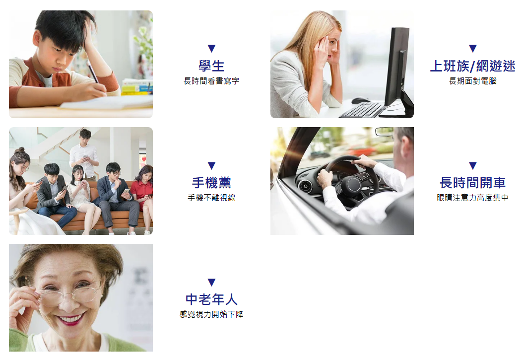 • 經常使用電腦、手機或長時間看書的人
